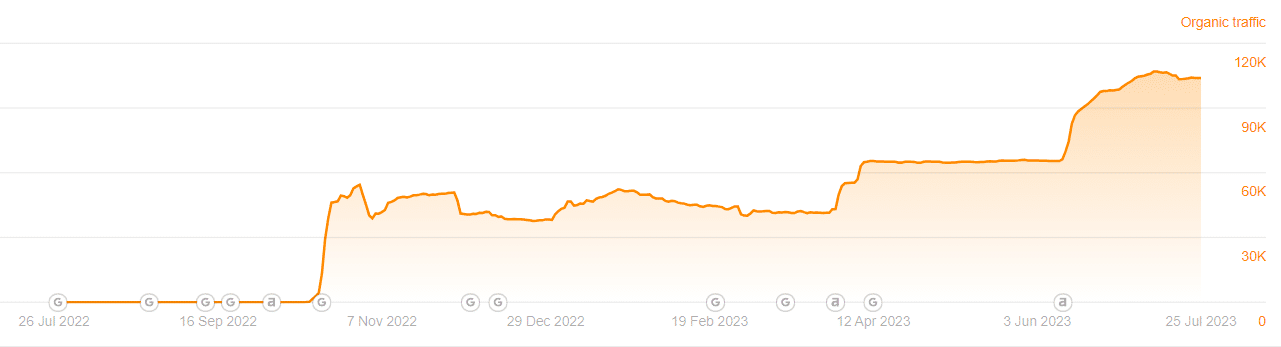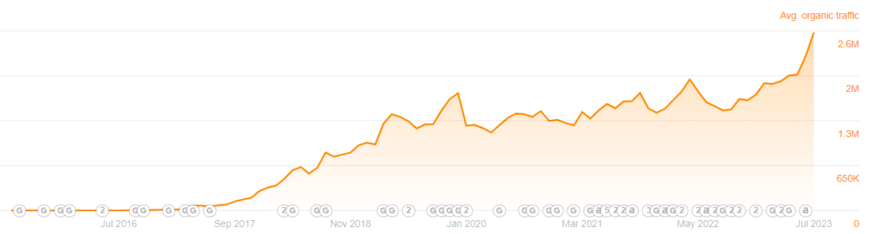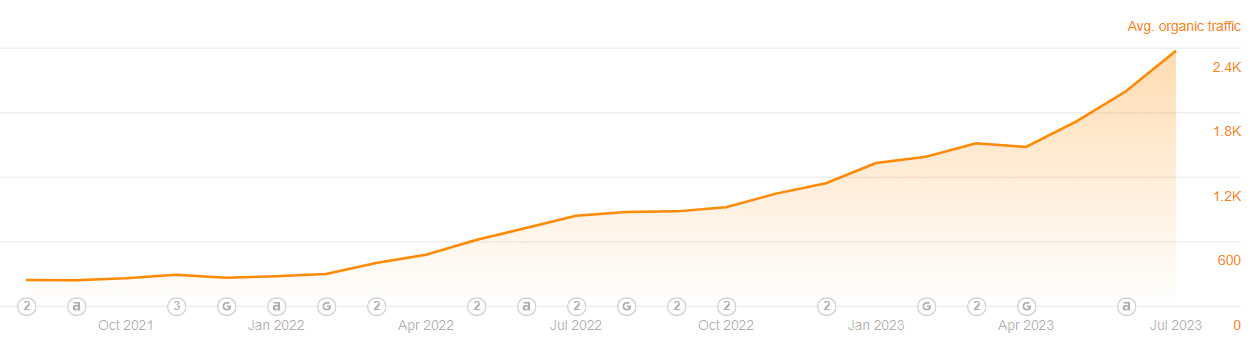 Over the course of two years, the organic traffic witnessed an impressive growth, surging from 500 monthly visitors to over 3,000 monthly visitors, representing a remarkable 400% increase.