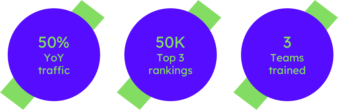 We delivered the technical and content foundation for organic growth with SEO best practices, leading to 175% YoY growth from the first migration, retaining branded traffic afterwards and growing to a point of more than 250% organic growth since the first migration.